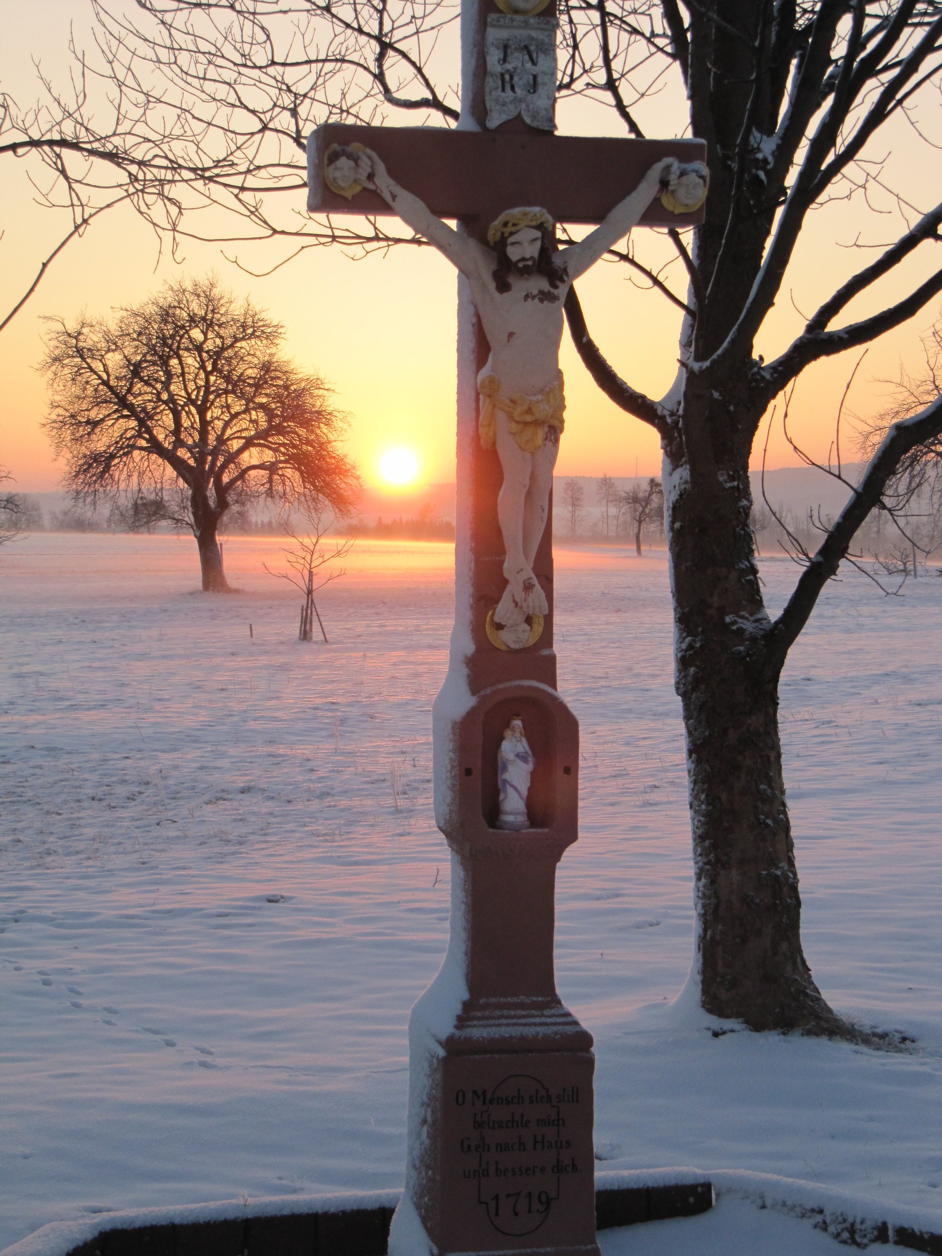 Alternativ kann man am Anfang der Tour der Pforzheimer Straße weiter folgen (Umrundung der Kirche auslassen) und das Wegkreuz an der Pforzheimer Str. 28 besichtigen.