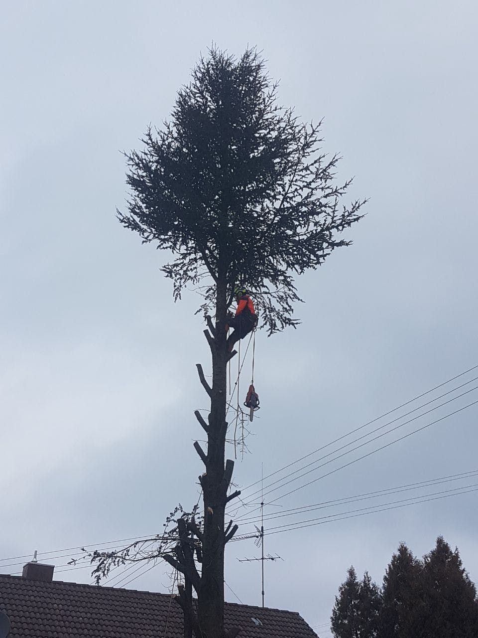 - unter Einsatz von Forstspezialschleppern, Seilklettertechnik, Hubarbeitsbühnen oder Autokränen bekommen wir jeden Baum sicher und effizient gefällt.